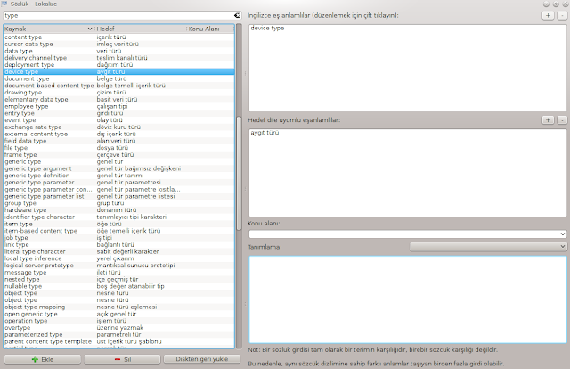 KDE Türkçe Yerelleştirme listelerinde konuştuğumuz konulardan biri de Lokalize içinden kullanılabilecek bir sözlüğe sahip olmak için neler yapabileceğimiz. Dün de konu tekrar gündeme gelince biraz araştırma yaptım. Öğrendiklerimi de sadece kendime saklamamak ve ileride de kendimin hatırlamasını kolaylaştırmak için kısaca bir yazı yazmak istedim.